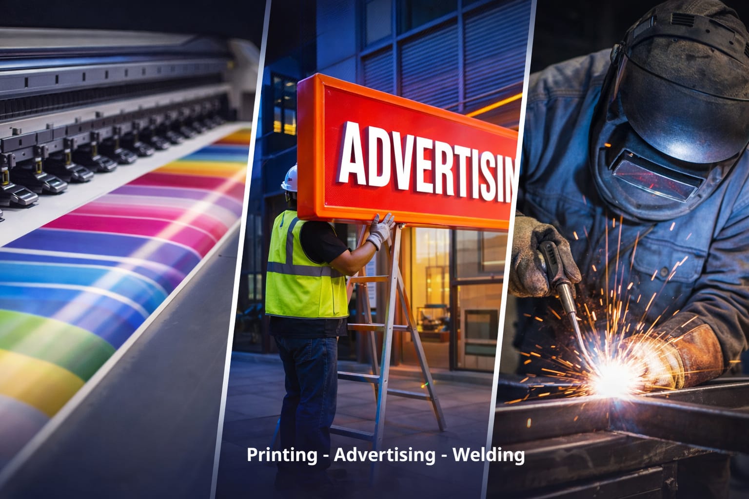 Kami Menyediakan Layanan PERCETAKAN, ADVERTISING REKLAME, Dan BENGKEL LAS.